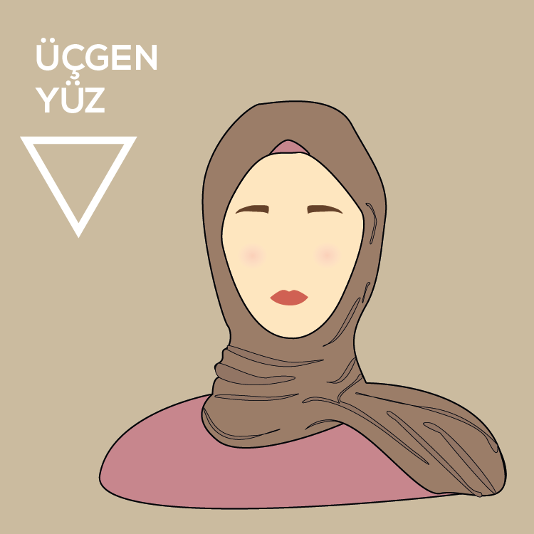 Üçgen yüz tipinde ise, alın dar, çene ise daha geniştir. Bu nedenle yüzü yukarıya doğru dengelemek için baş örtüsünü çene kısmı daha sıkı, alın bölgesini tamamen kapanmayacak şekilde örtmek uygun olacaktır.
