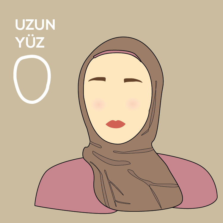 Uzun yüz hatlarına sahip olanlar, yüzü daha kısa ve dengeli göstermek için baş örtülerini başın üst kısmında fazla hacim oluşturmayacak şekilde ve çene hizasını daha bol bırakarak bağlamayı tercih edebilirler.
